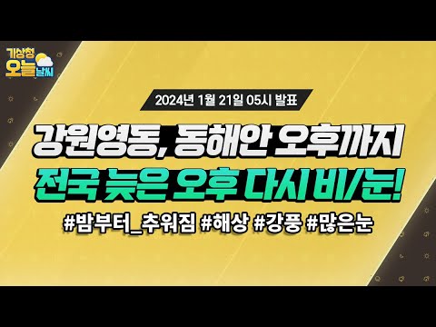 [오늘날씨] 강원영동과 동해안 오후까지, 늦은 오후 다시 전국 비 또는 눈 와요. 1월 21일 5시 기준 기상청 0 430 2024.01.21 07:00 https://www.youtube.com/watch?v=d0kjw26Kl28 + 53 https://www.youtube.com/feeds/videos.xml?channel_id=UCI110BywhJpYRC1XY… + 51 [오늘날씨] 강원영동과 동해안 오후까지, 늦은 오후 다시 전국 비 또는 눈 와요. 1월 21일 5시 기준