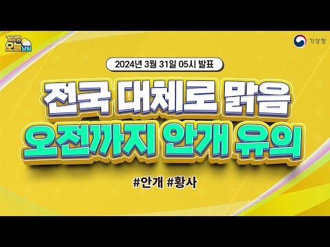 [오늘날씨] 전국 대체로 맑음, 오전까지 안개 유의. 3월 31일 5시 기준 기상청 0 658 2024.03.31 07:00 https://www.youtube.com/watch?v=o2DlJARY0X4 + 66 https://www.youtube.com/feeds/videos.xml?channel_id=UCI110BywhJpYRC1XY… + 63 [오늘날씨] 전국 대체로 맑음, 오전까지 안개 유의. 3월 31일 5시 기준