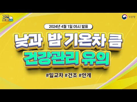 [오늘날씨] 낮과 밤 기온차 큼, 건강관리 유의. 4월 1일 5시 기준 기상청 0 1019 2024.04.01 07:00 https://www.youtube.com/watch?v=rFZsNGLZhL4 + 107 https://www.youtube.com/feeds/videos.xml?channel_id=UCI110BywhJpYRC1XY… + 107 [오늘날씨] 낮과 밤 기온차 큼, 건강관리 유의. 4월 1일 5시 기준