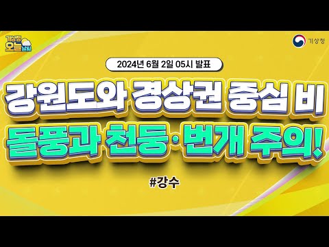 [오늘날씨] 강원도와 경상권 중심 비, 돌풍과 천둥·번개 주의. 6월 2일 5시 기준 기상청 0 532 2024.06.02 07:15 https://www.youtube.com/watch?v=y6dlLc8mVZQ + 79 https://www.youtube.com/feeds/videos.xml?channel_id=UCI110BywhJpYRC1XY… + 65 [오늘날씨] 강원도와 경상권 중심 비, 돌풍과 천둥·번개 주의. 6월 2일 5시 기준