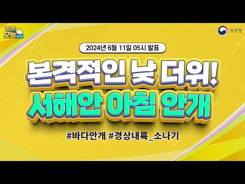 [오늘날씨] 본격적으로 낮에 더워요! 서해안은 아침까지 곳곳에 안개 껴요. 6월 11일 5시 기준 기상청 0 409 2024.06.11 07:00 https://www.youtube.com/watch?v=IwIwC2hHjTc + 51 https://www.youtube.com/feeds/videos.xml?channel_id=UCI110BywhJpYRC1XY… + 42 [오늘날씨] 본격적으로 낮에 더워요! 서해안은 아침까지 곳곳에 안개 껴요. 6월 11일 5시 기준