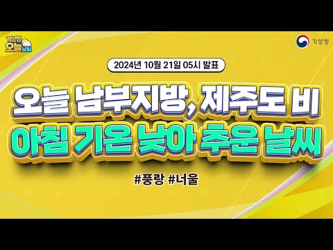 [오늘날씨] 오늘 남부지방과 제주도 가끔 비, 아침 기온 낮아 추운 날씨. 10월 21일 5시 기준 기상청 0 242 2024.10.21 07:00 https://www.youtube.com/watch?v=DOLDceZL7E0 + 25 https://www.youtube.com/feeds/videos.xml?channel_id=UCI110BywhJpYRC1XY… + 19 [오늘날씨] 오늘 남부지방과 제주도 가끔 비, 아침 기온 낮아 추운 날씨. 10월 21일 5시 기준