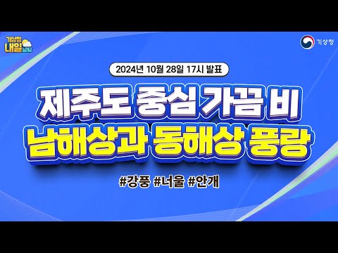 [내일날씨] 제주도와 전남해안 중심 비, 남해상과 동해상 풍랑 유의. 10월 28일 17시 기준 기상청 0 189 2024.10.28 18:07 https://www.youtube.com/watch?v=gGfXVZ4sA04 + 28 https://www.youtube.com/feeds/videos.xml?channel_id=UCI110BywhJpYRC1XY… + 18 [내일날씨] 제주도와 전남해안 중심 비, 남해상과 동해상 풍랑 유의. 10월 28일 17시 기준