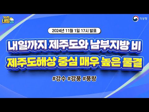 [내일날씨] 내일까지 제주도와 남부지방 비, 바람 매우 강. 11월 1일 17시 기준 기상청 0 254 2024.11.01 19:11 https://www.youtube.com/watch?v=vbRElXQhjhY + 24 https://www.youtube.com/feeds/videos.xml?channel_id=UCI110BywhJpYRC1XY… + 16 [내일날씨] 내일까지 제주도와 남부지방 비, 바람 매우 강. 11월 1일 17시 기준