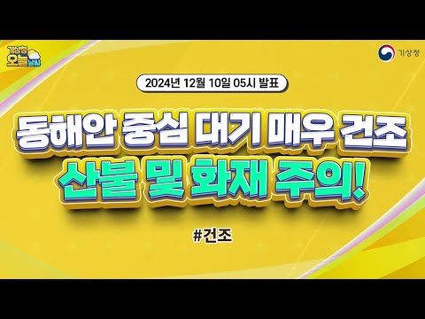 [오늘날씨] 동해안 중심 대기 매우 건조, 산불 및 화재 주의! 12월 10일 5시 기준 기상청 0 220 2024.12.10 07:00 https://www.youtube.com/watch?v=-CyoX1dj484 + 15 https://www.youtube.com/feeds/videos.xml?channel_id=UCI110BywhJpYRC1XY… + 14 [오늘날씨] 동해안 중심 대기 매우 건조, 산불 및 화재 주의! 12월 10일 5시 기준
