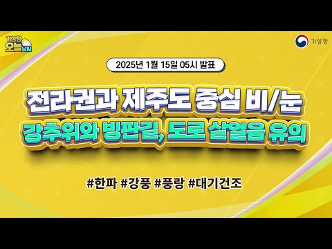 [오늘날씨] 전라권과 제주도 중심 비 또는 눈 곳, 강추위와 빙판길, 도로 살얼음 유의. 1월 15일 5시 기준 기상청 0 287 01.15 07:00 https://www.youtube.com/watch?v=jIXuUYLU40Q + 26 https://www.youtube.com/feeds/videos.xml?channel_id=UCI110BywhJpYRC1XY… + 32 [오늘날씨] 전라권과 제주도 중심 비 또는 눈 곳, 강추위와 빙판길, 도로 살얼음 유의. 1월 15일 5시 기준