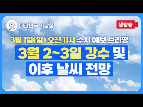 3월 1일(일) 오전 11시 기상청 수시 예보 브리핑ㅣ3월 2~3일 강수 및 이후 날씨 전망 기상청 0 17 02.28 17:10 https://www.youtube.com/watch?v=_ERVLSSjUFM + 0 https://www.youtube.com/feeds/videos.xml?channel_id=UCI110BywhJpYRC1XY… + 0 3월 1일(일) 오전 11시 기상청 수시 예보 브리핑ㅣ3월 2~3일 강수 및 이후 날씨 전망
