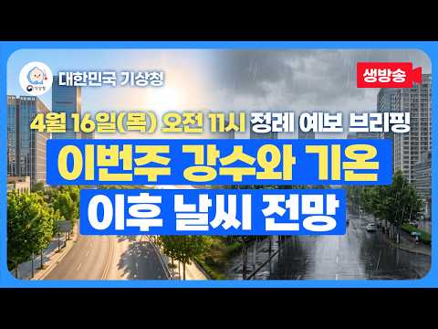 이번주 강수와 기온 날씨 전망ㅣ4월 16일(목) 오전 11시 기상청 정례 예보 브리핑 기상청 0 15 11시간전 https://www.youtube.com/watch?v=Hk0E8fiCPkU + 0 https://www.youtube.com/feeds/videos.xml?channel_id=UCI110BywhJpYRC1XY… + 0 이번주 강수와 기온 날씨 전망ㅣ4월 16일(목) 오전 11시 기상청 정례 예보 브리핑