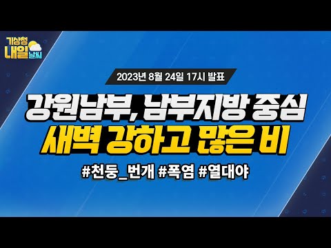 [내일날씨] 강원남부, 남부지방 중심 내일 새벽까지 강하고 많은 비. 8월 24일 17시 기준 기상청 0 682 2023.08.24 18:42 https://www.youtube.com/watch?v=A9stFOqftpY + 78 https://www.youtube.com/feeds/videos.xml?channel_id=UCI110BywhJpYRC1XY… + 74 [내일날씨] 강원남부, 남부지방 중심 내일 새벽까지 강하고 많은 비. 8월 24일 17시 기준