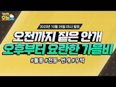 [오늘날씨] 오전까지 안개 짙어요! 오후부터 요란한 가을비, 우산 챙기세요! 10월 26일 5시 기준 기상청 0 703 2023.10.26 07:18 https://www.youtube.com/watch?v=P5TLmNkhOQM + 87 https://www.youtube.com/feeds/videos.xml?channel_id=UCI110BywhJpYRC1XY… + 74 [오늘날씨] 오전까지 안개 짙어요! 오후부터 요란한 가을비, 우산 챙기세요! 10월 26일 5시 기준