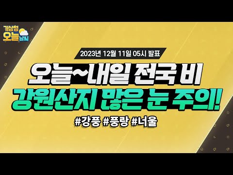 [오늘날씨] 오늘~내일 전국 비, 강원산지 많은 눈 주의! 12월 11일 5시 기준 기상청 0 649 2023.12.11 07:53 https://www.youtube.com/watch?v=_DkwsCWM9OU + 335 https://www.youtube.com/feeds/videos.xml?channel_id=UCI110BywhJpYRC1XY… + 71 [오늘날씨] 오늘~내일 전국 비, 강원산지 많은 눈 주의! 12월 11일 5시 기준
