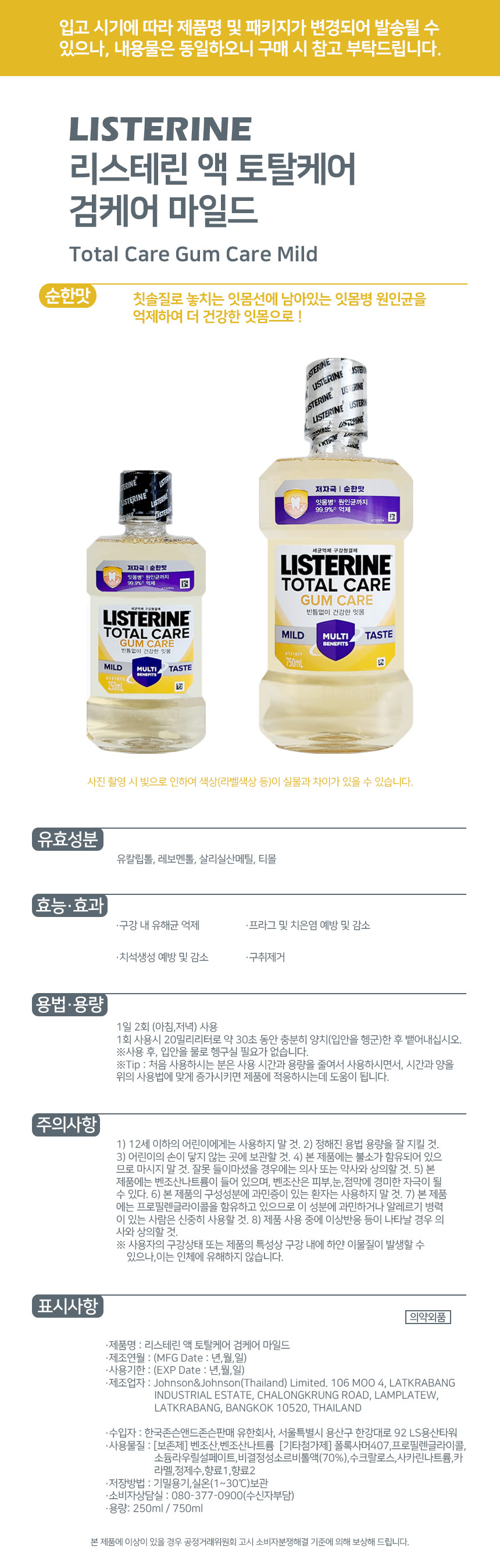 리스테린 토탈케어 검케어 마일드 750ml X 2개