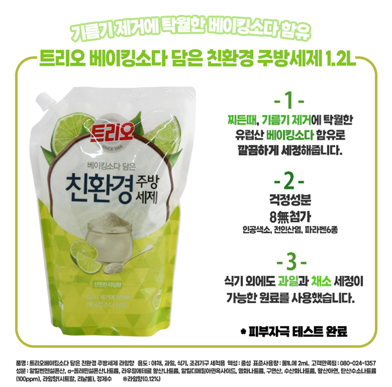 트리오 베이킹소다 담은 주방세제(리필/라임/1.2L)