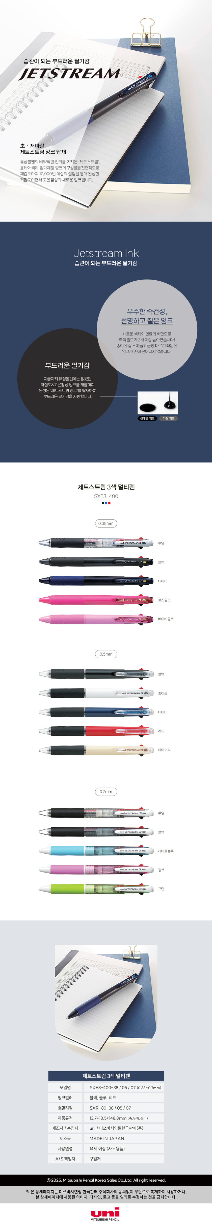 | 모델명 | 제트스트림 3색볼펜 0.5 SXE3-400-05 아이보리바디 1자루 미쯔비시 |
