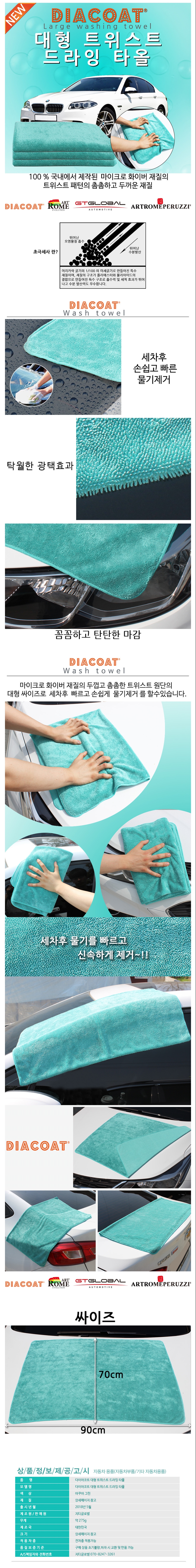 흡수력이 뛰어난 대형 세차타올 아쿠아그린 900X700mm