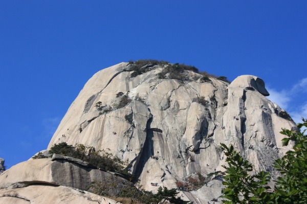 혹시 저기가 인수봉인가요? 사진 아랫부분에 보면 바위 위를 오르기 위해서 기다리고 있는 사람들이 보이나요? 대단하죠?