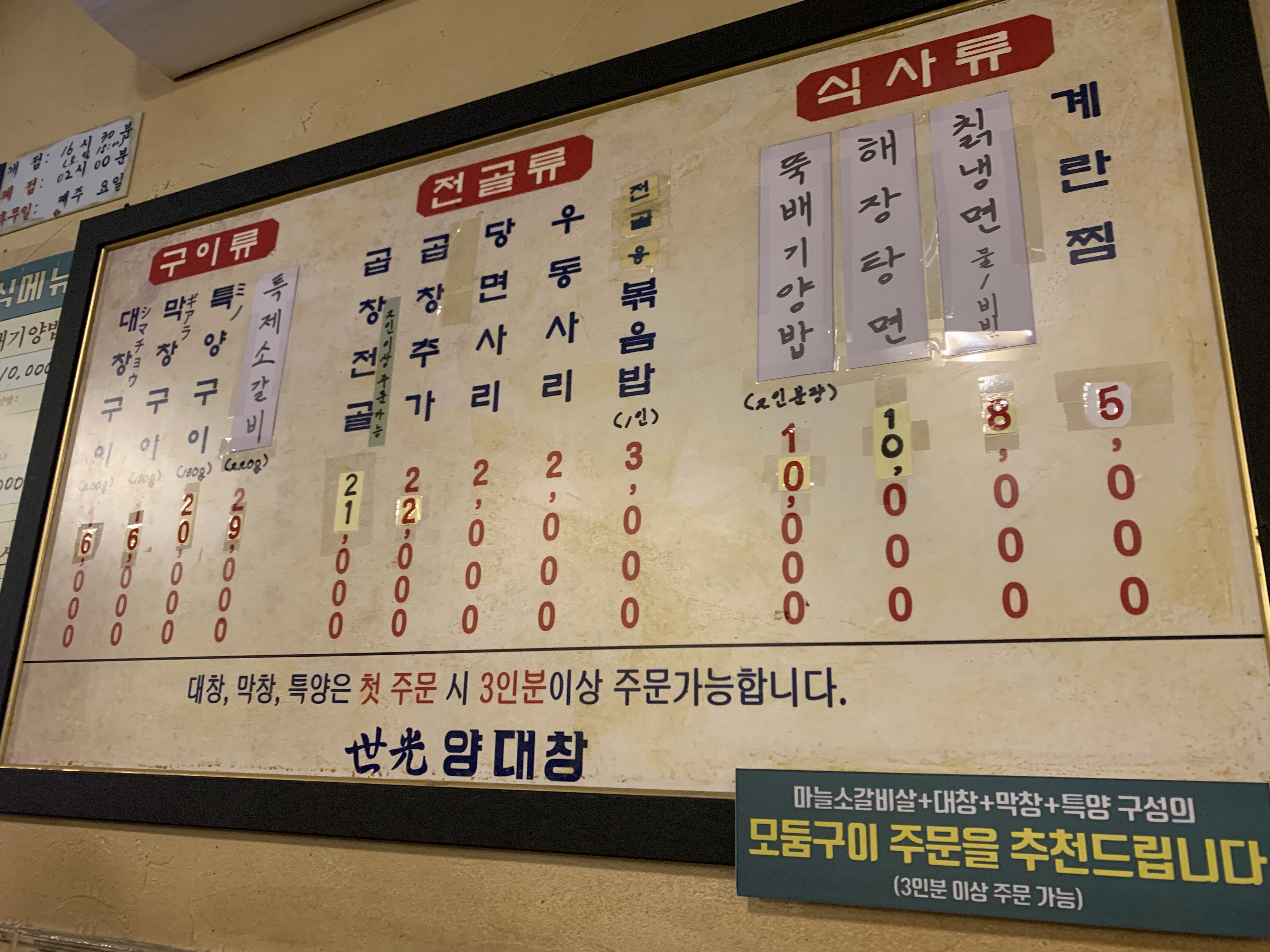 논현동 먹자 골목에 있는 양대창집인데, 프렌차이즈라고 한다.