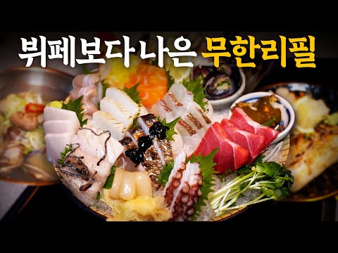 숙성회 9종 이상+수제 튀김+야키토리 전부 무제한?? 그냥 역대급 무한리필입니다... (인당 3.9만원)