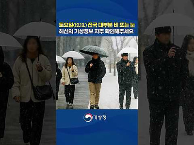 토요일(12.13) 전국 대부분 비 또는 눈, 최신의 기상정보 자주 확인해주세요! | 기상청이 알려드립니다