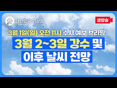 3월 1일(일) 오전 11시 기상청 수시 예보 브리핑ㅣ3월 2~3일 강수 및 이후 날씨 전망