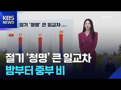 [날씨] 절기 ‘청명’ 큰 일교차…밤부터 중부 비 / KBS 2026.04.05.