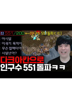 다크아칸으로 게임 끝날때까지 쉬지않고 상대 유닛 뺏어서 551 역대급 인구수 만들어버림ㅋㅋ